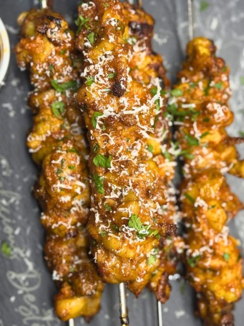 Try these flavorful oven-baked chicken skewers seasoned with paprika, garlic, and onion powder, topped with a creamy garlic-parmesan sauce. Deliciously tender and perfect for any m