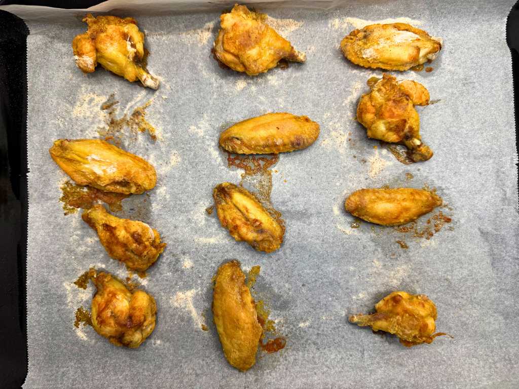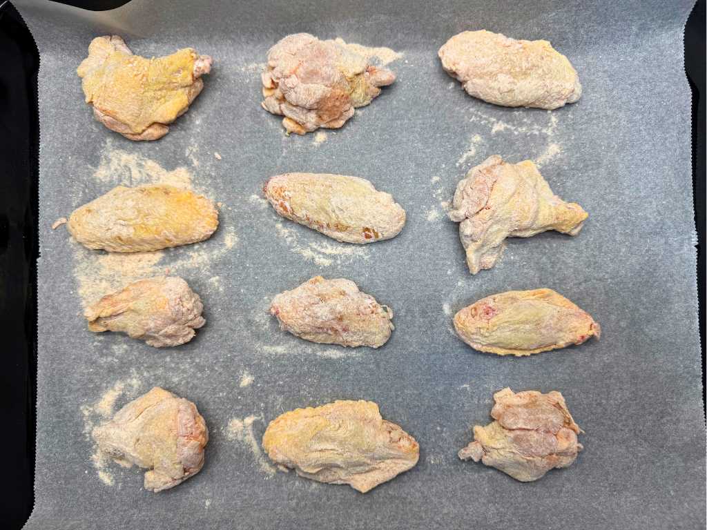 - If using whole wings, separate them at the joint into drumettes and wingettes. Pat them dry thoroughly with paper towels to remove excess moisture.
